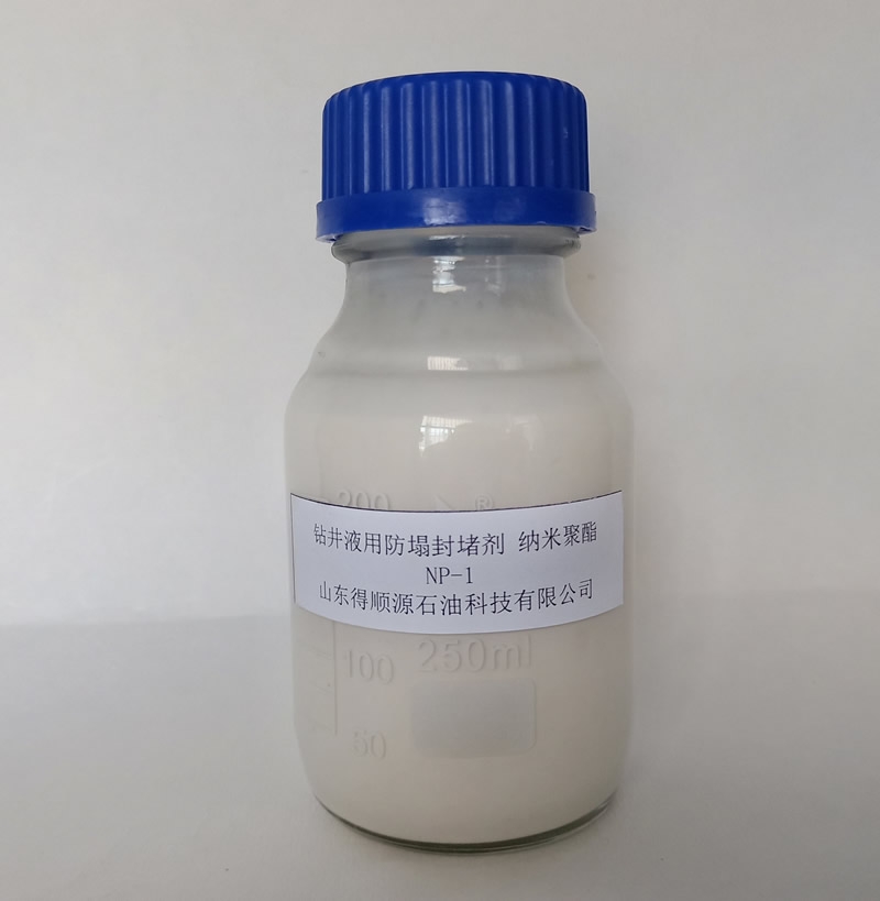 鉆井液用納米聚酯NP-1是由烷基磺酸鹽、烷基酯、交聯(lián)劑等聚合成的多元聚合物,通過特種工藝加工而成的納米級封堵材料。